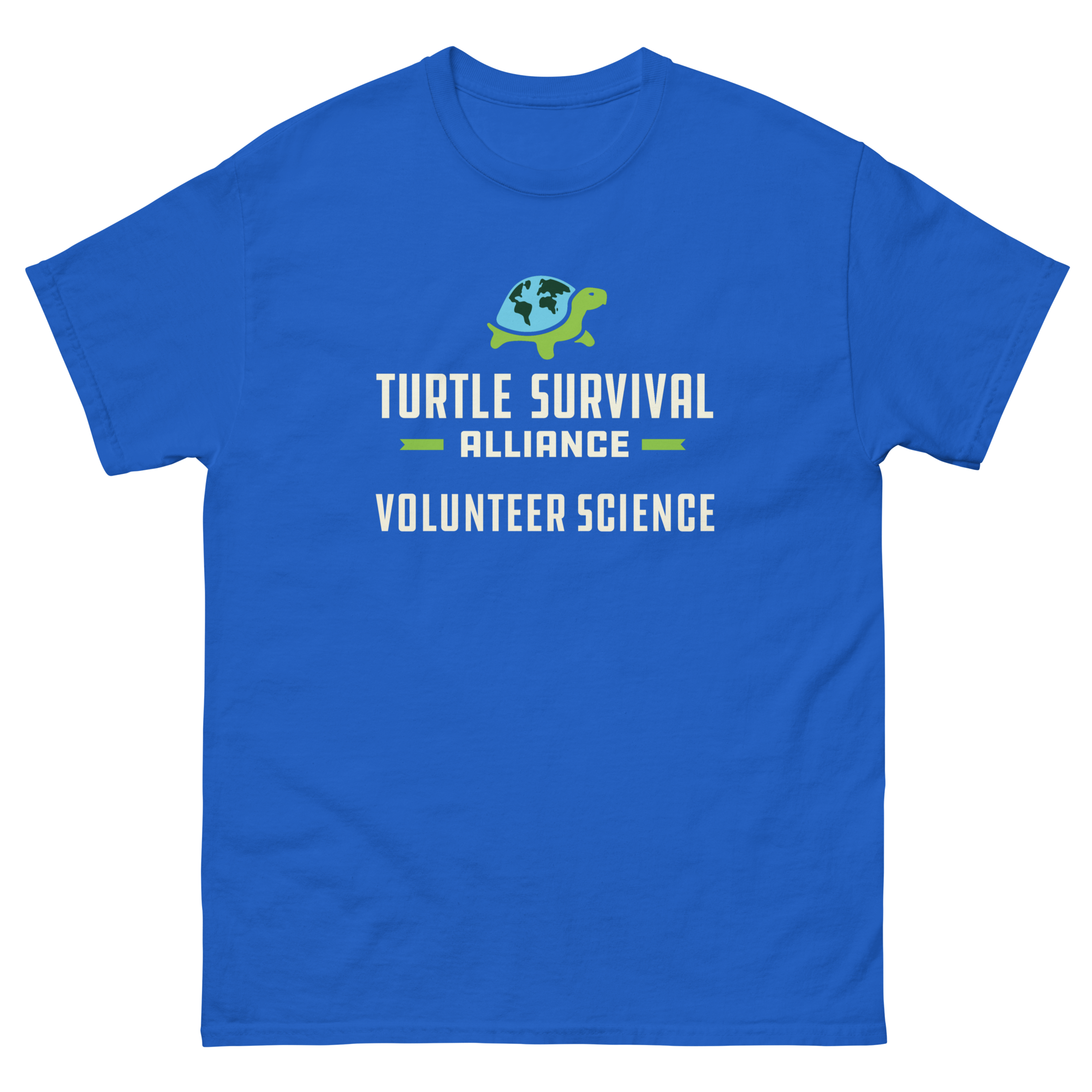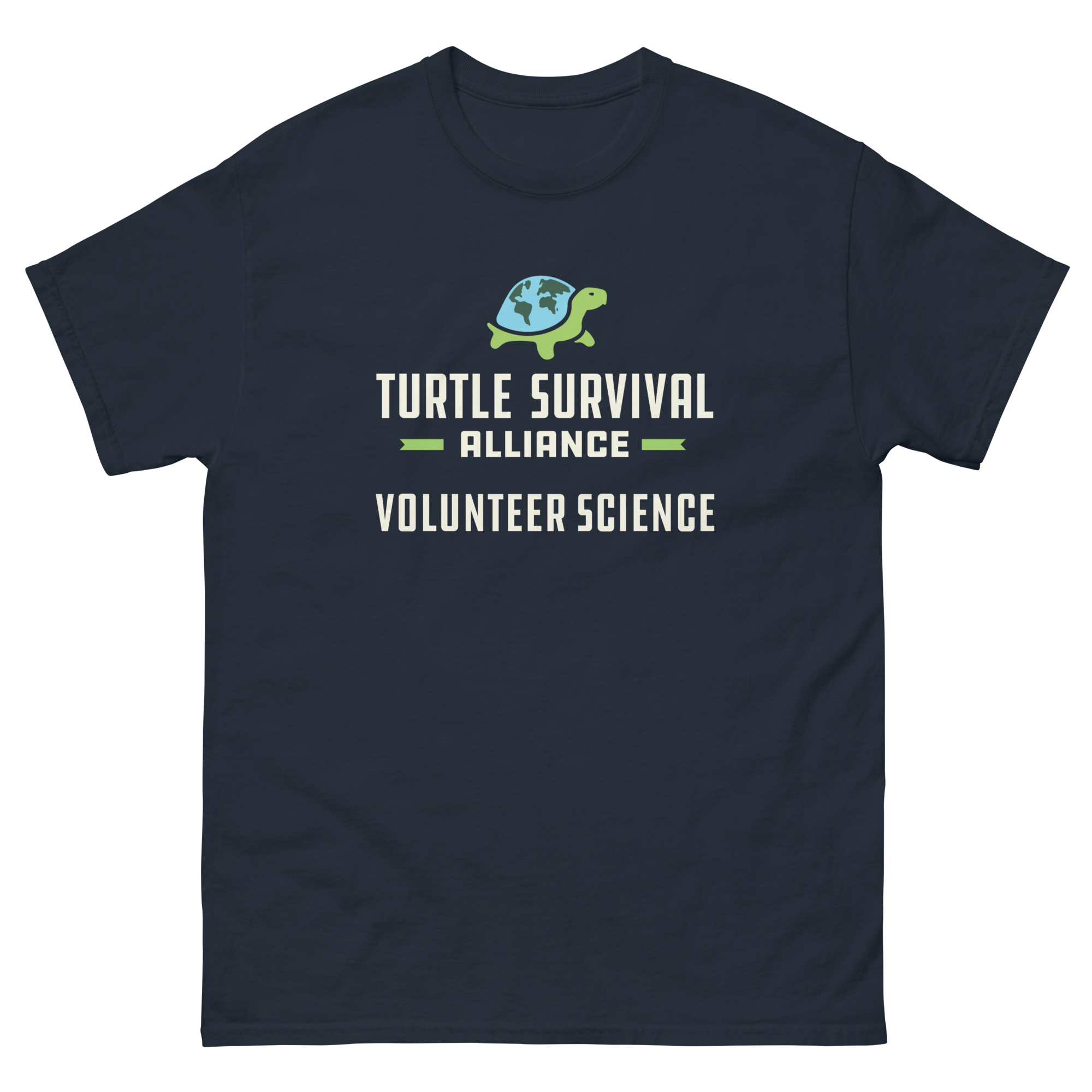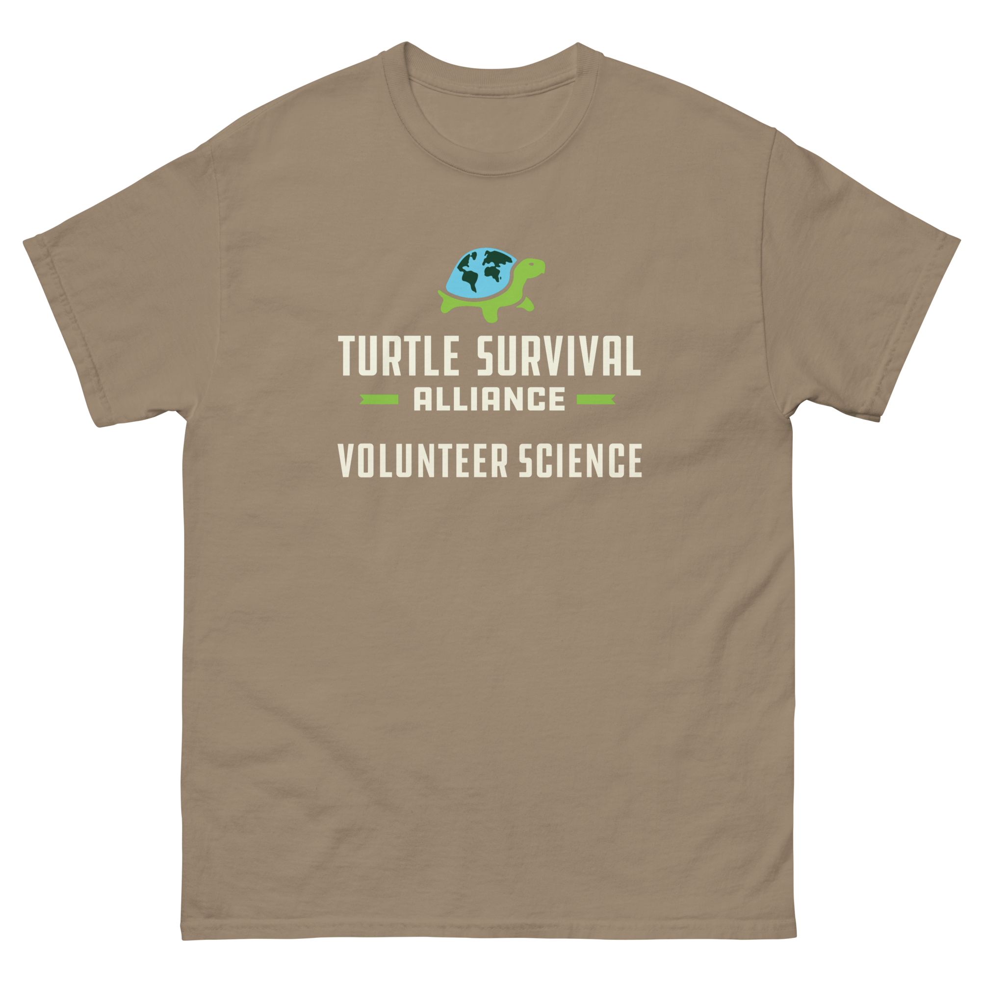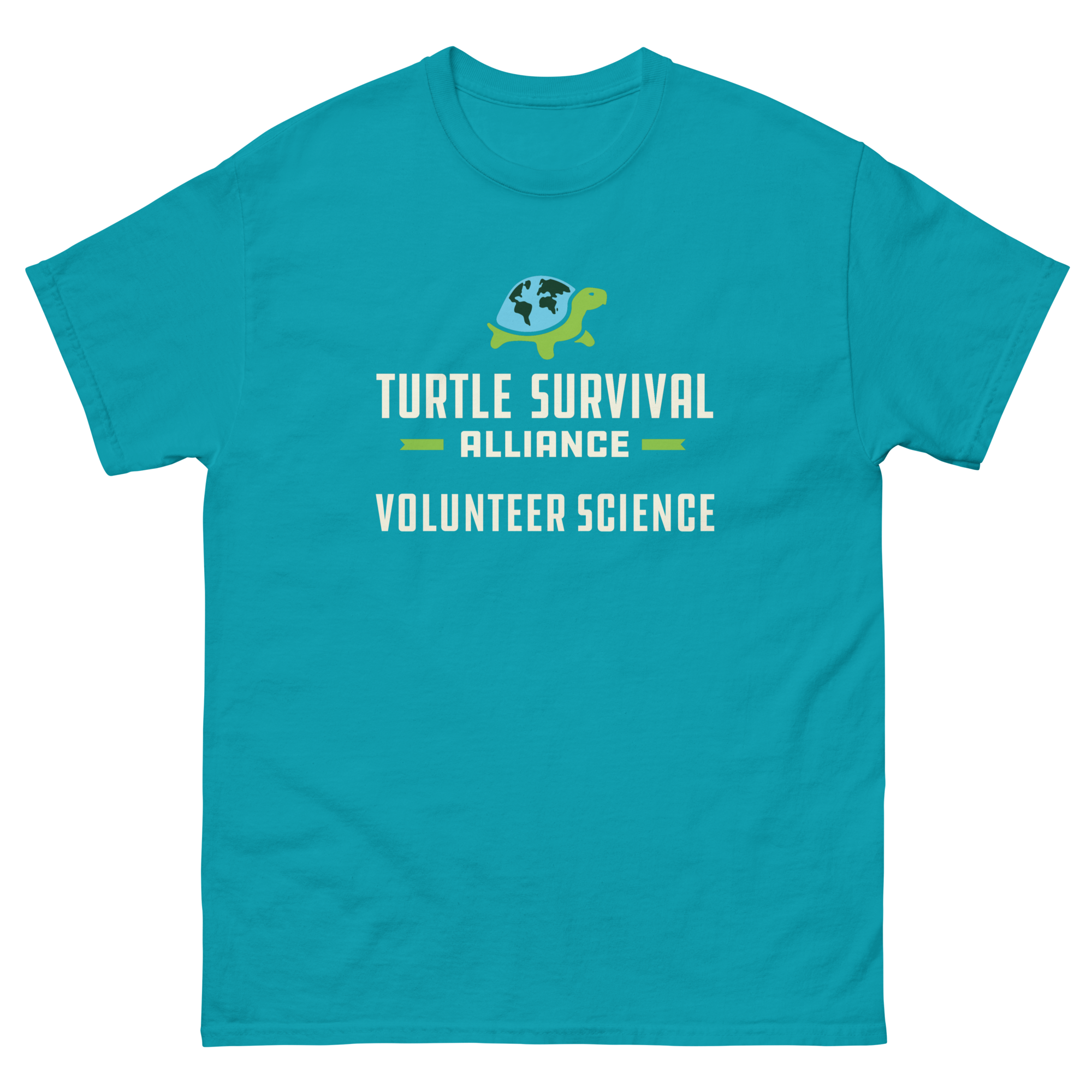 This comfortable and flattering 100% cotton* unisex classic tee is everything a turtle researcher dreams of and more—soft and breathable material, featuring a simple TSA Volunteer Science design. This classic shirt style and fabric is your new go-to field tee.