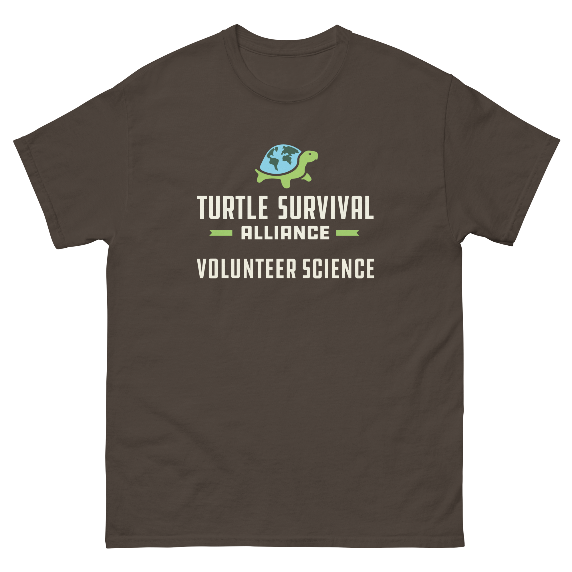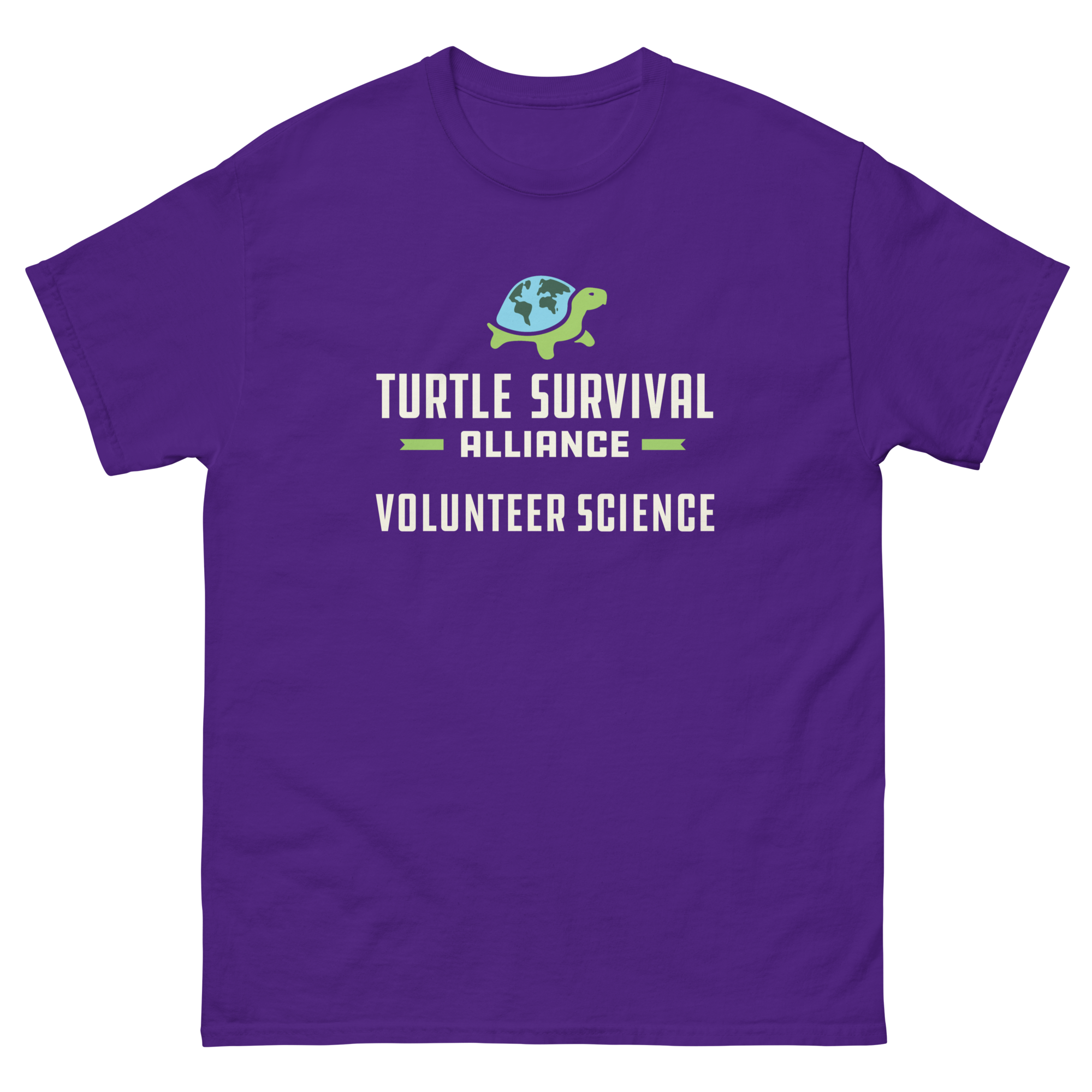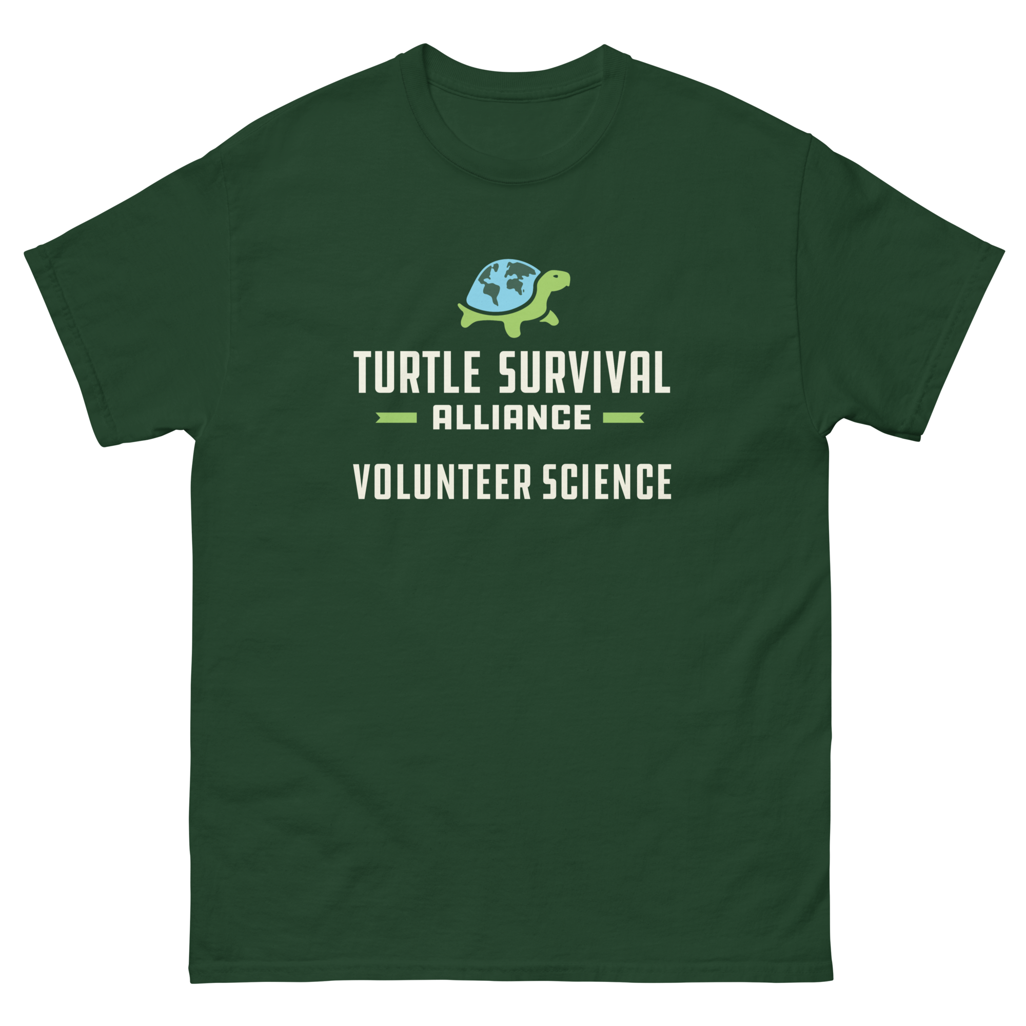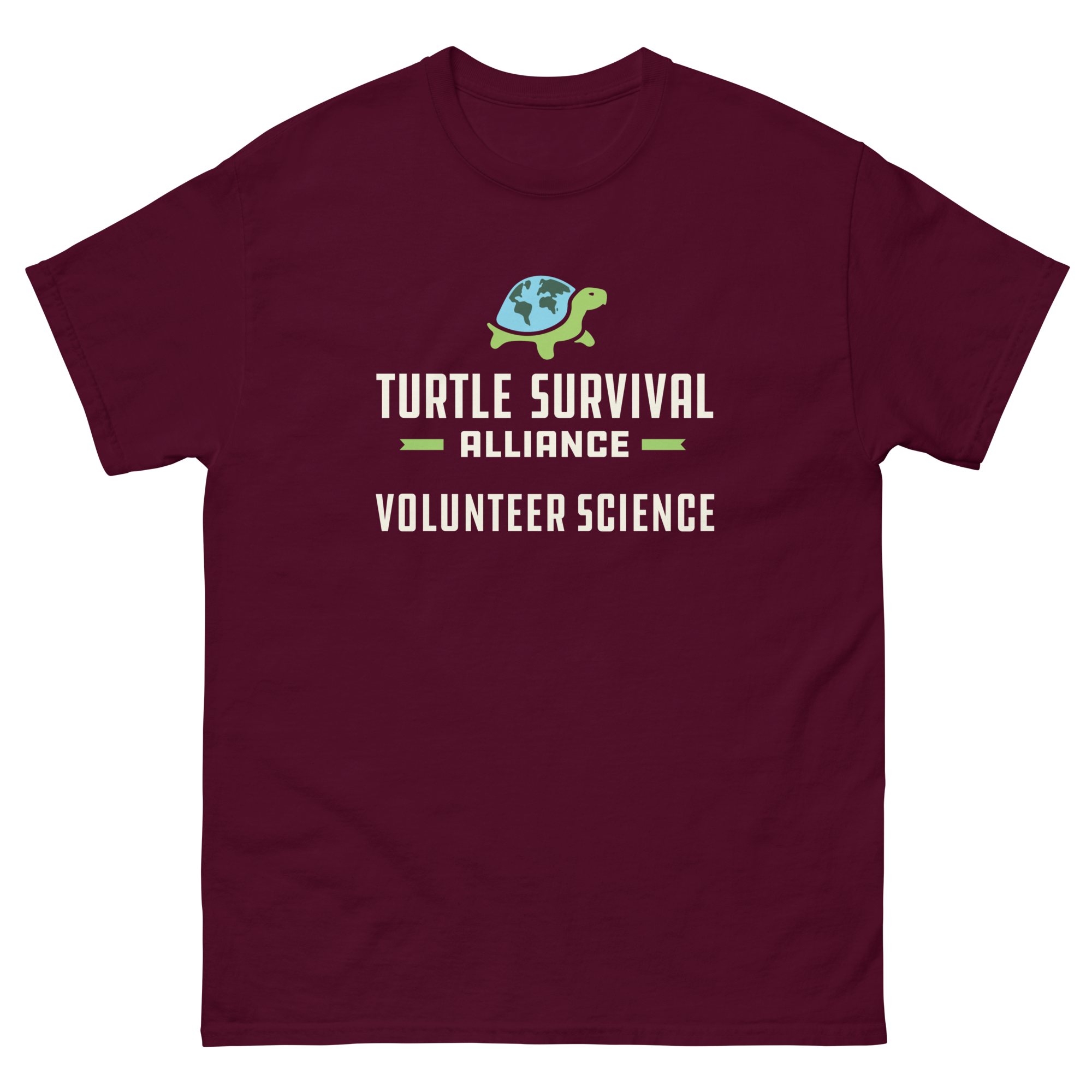 This comfortable and flattering 100% cotton* unisex classic tee is everything a turtle researcher dreams of and more—soft and breathable material, featuring a simple TSA Volunteer Science design. This classic shirt style and fabric is your new go-to field tee.